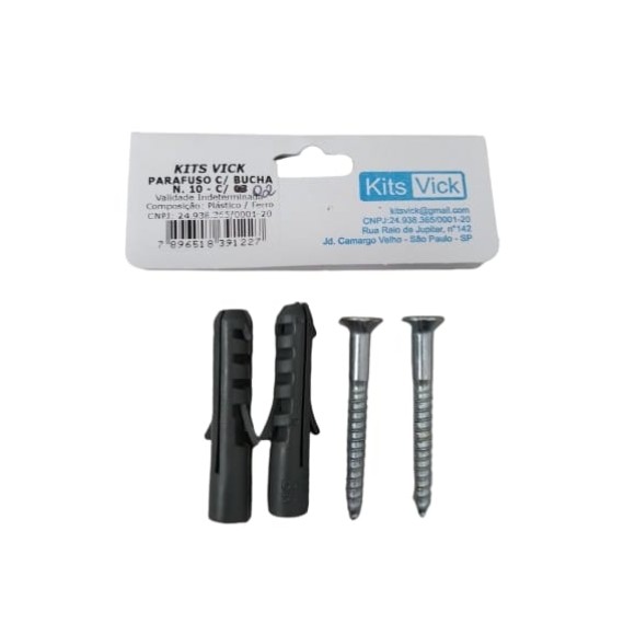 Parafuso com bucha n°10 com 6 pacotes contendo 2 jogos cada Kits Vick