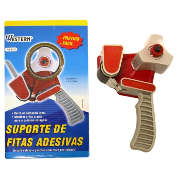 3. Puxe um pouco a fita adesiva e aplique na caixa, pressionando o rolete com a fita sobre o local.