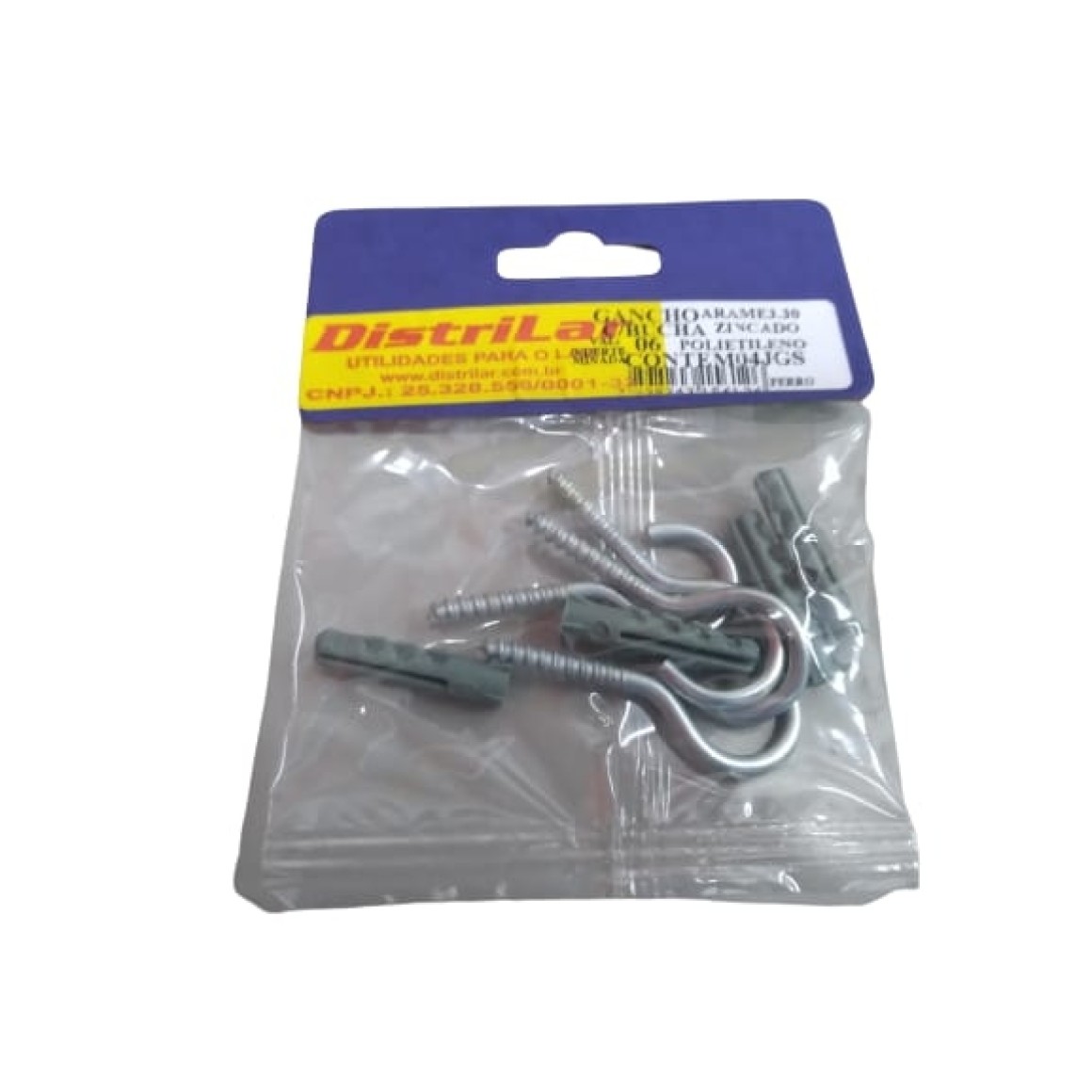 Gancho bucha n.06 zincado polietileno c/4jgs pct c/6 districenter