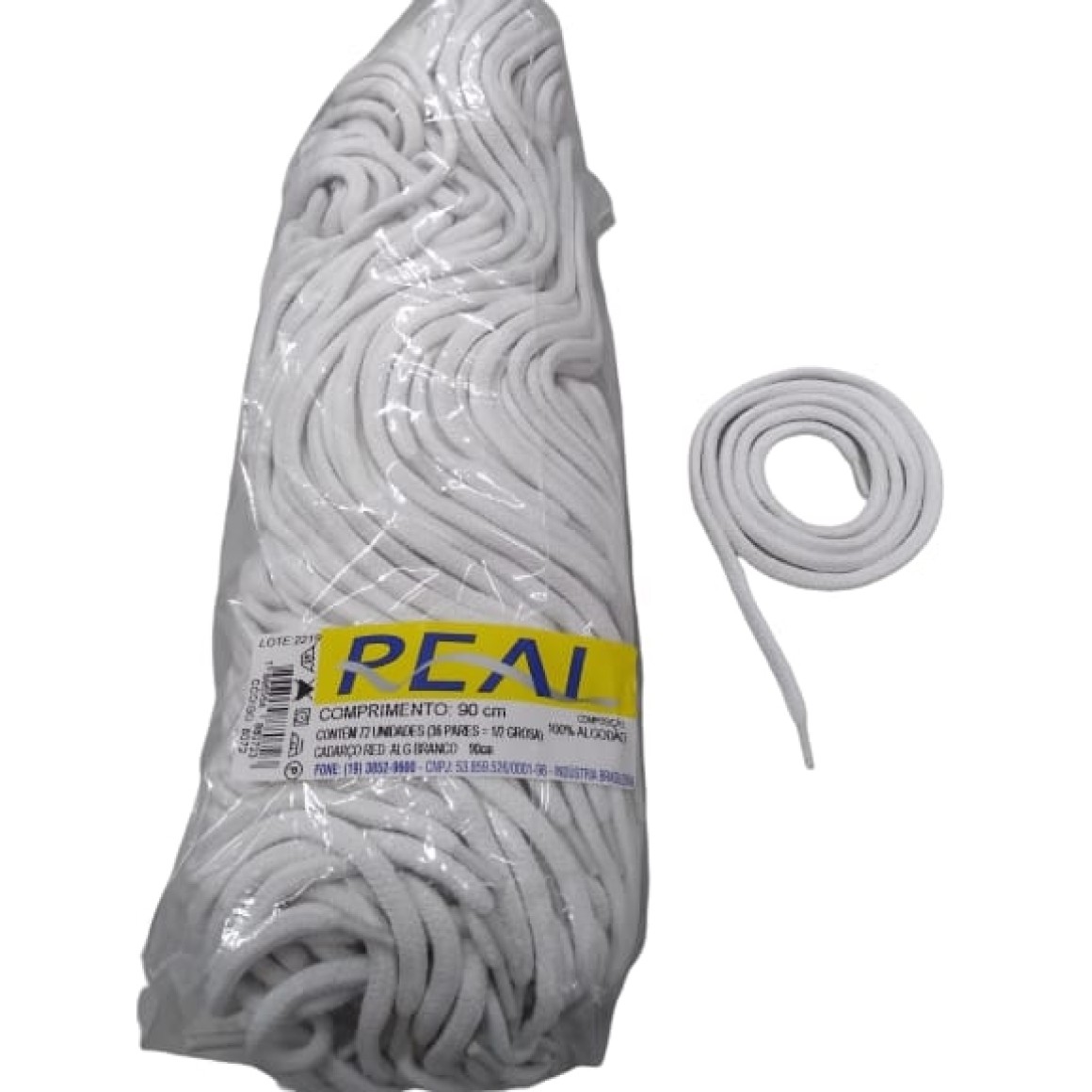 Cadarço redondo cor branca de 90cm pacote com 36 pares Real Textil
