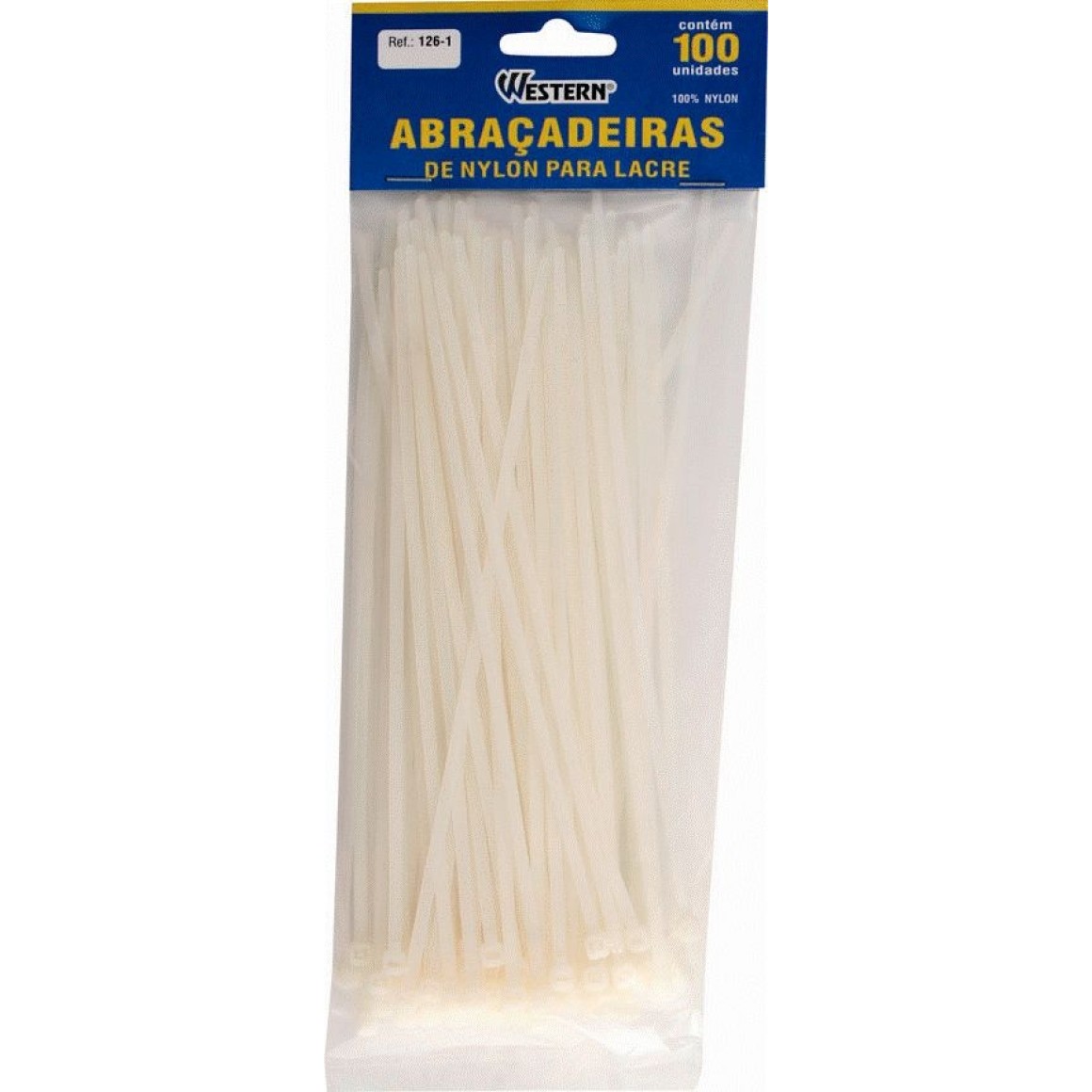 Abraçadeira 126-1 pacote c/100pçs nylon branca 3.6mmx150mm
