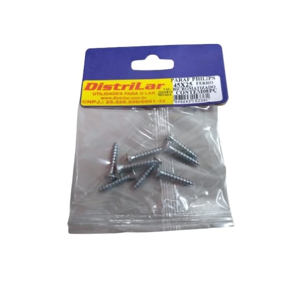 Parafuso 45x25 ferro bicromatizado philips c/8pcs pct c/6pçs districenter 336