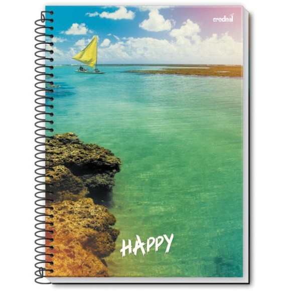 Caderno espiral 1/4 Happy c/1 pç 48 folhas Credeal Cód:202715
