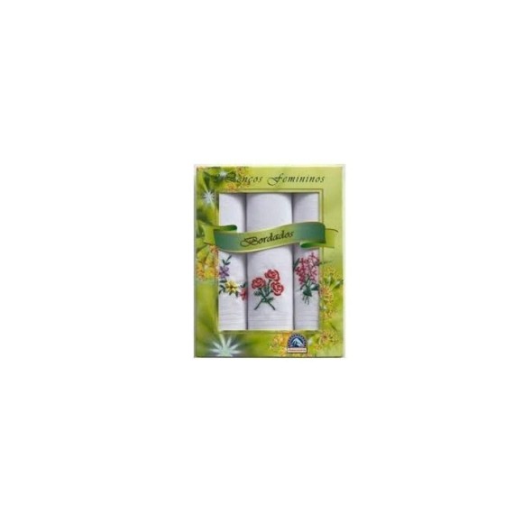 Lenço bordado caixa c/3pçs 30x30cm presidente