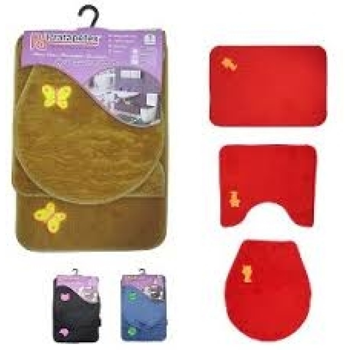 Jogo tapete p/ banheiro bordado kit c/3pçs 55 serie luxo pratapetes