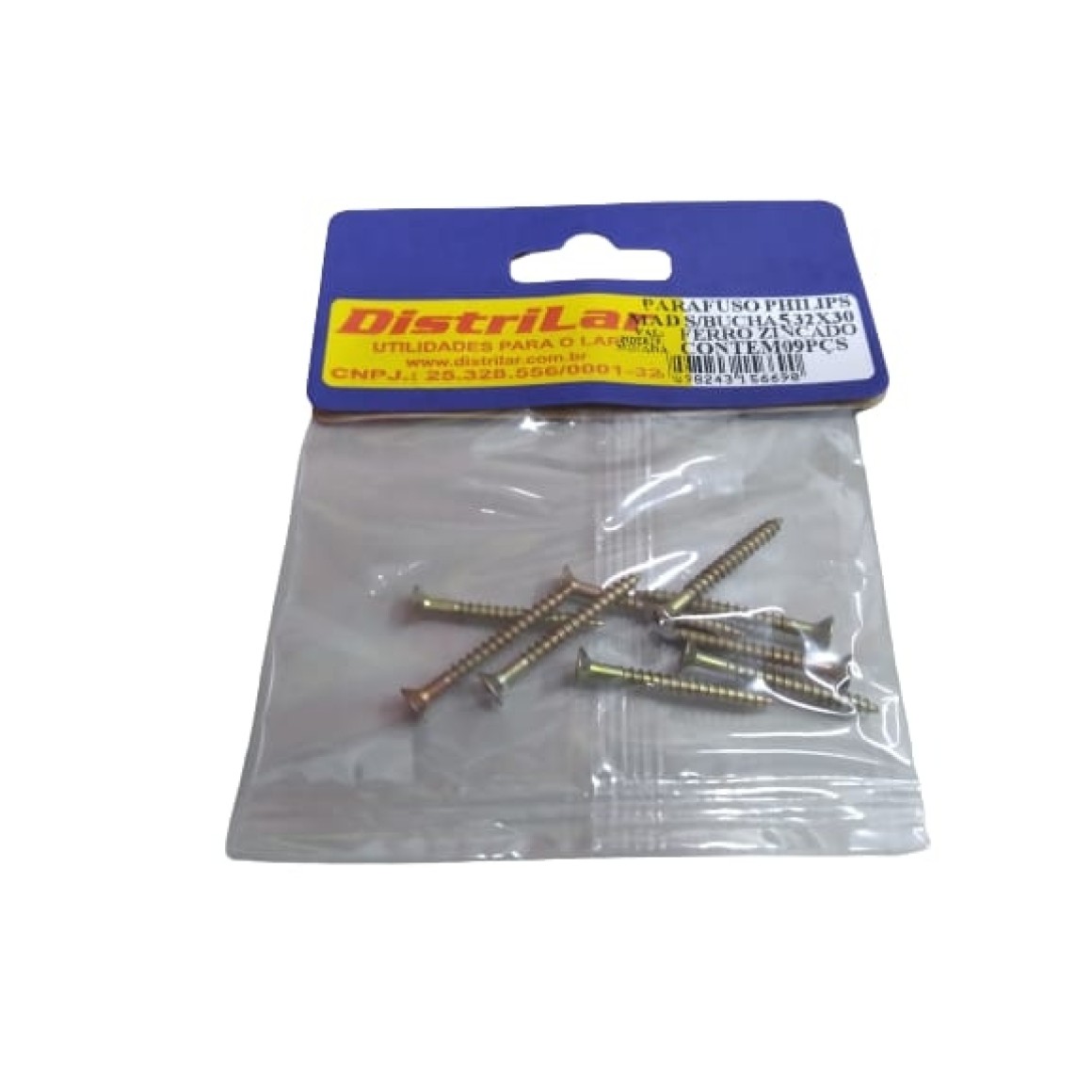 Parafuso philips ferro zincado mad s/ bucha nº5 c/9pcs pct c/6pçs 669