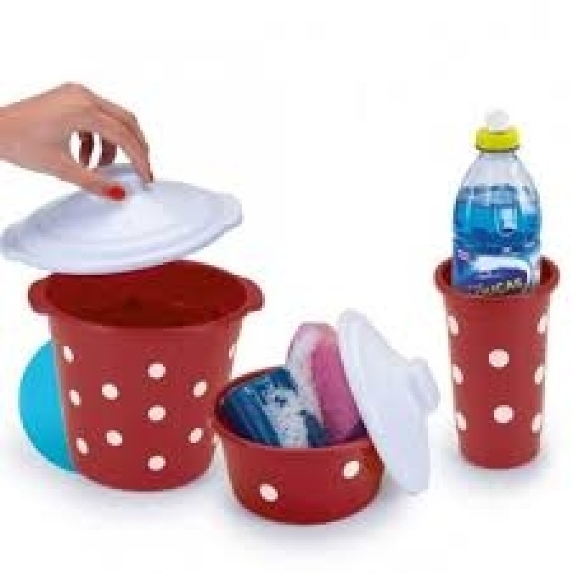Kit pia limpeza com 3 peças estampa de bolinhas ref. 40 Rainha
