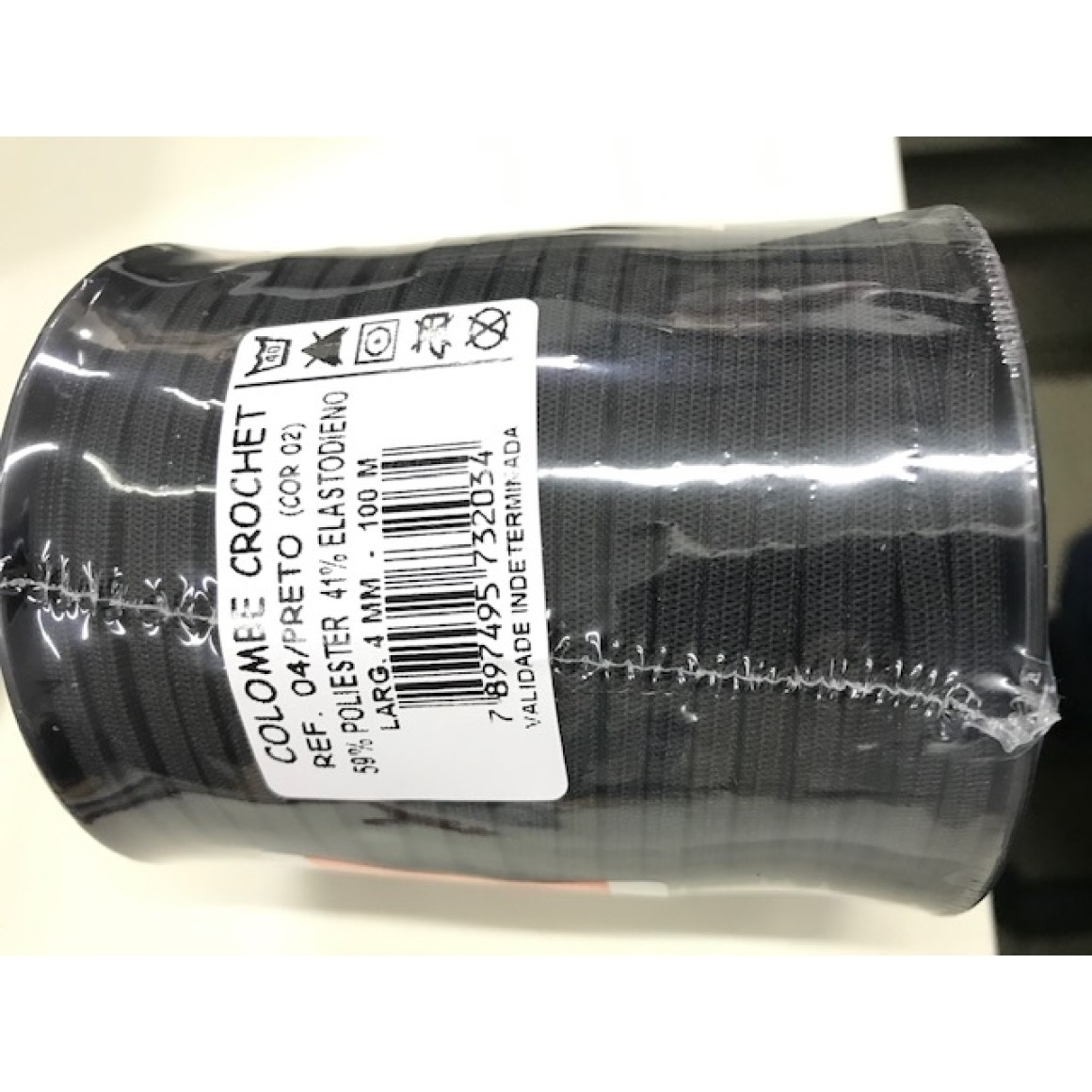 Elástico Preto Poliéster Colombe Crochet 4 mm - 100 m São José