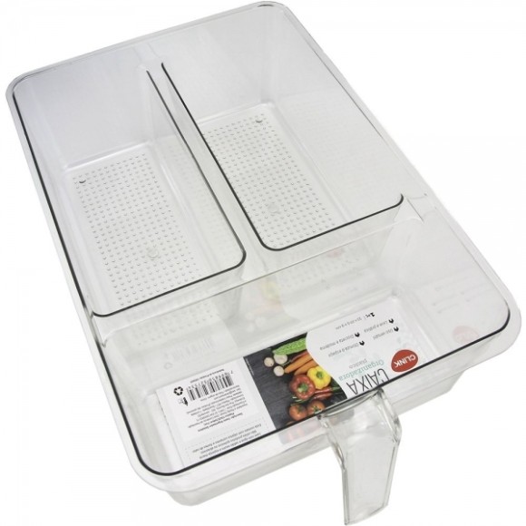 Use cestinhas para setorizar os itens na geladeira, no armário da cozinha, despensa, lavanderia, banheiro, etc.