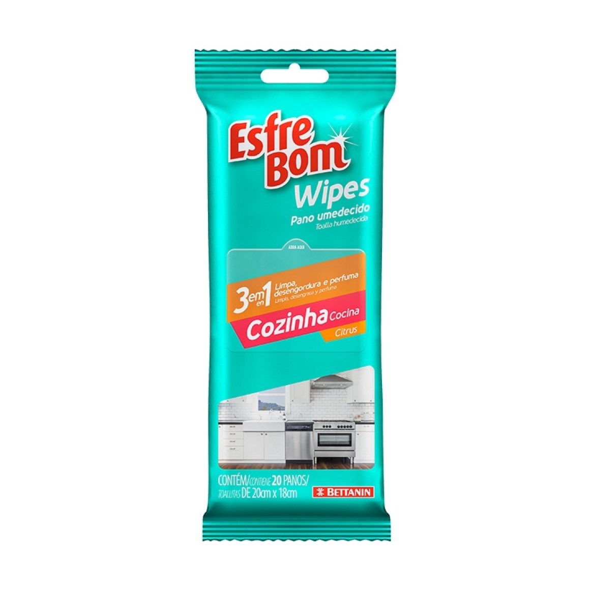 Os Panos Umedecidos EsfreBom, para limpeza da cozinha, são práticos e eficientes na limpeza de superfícies.