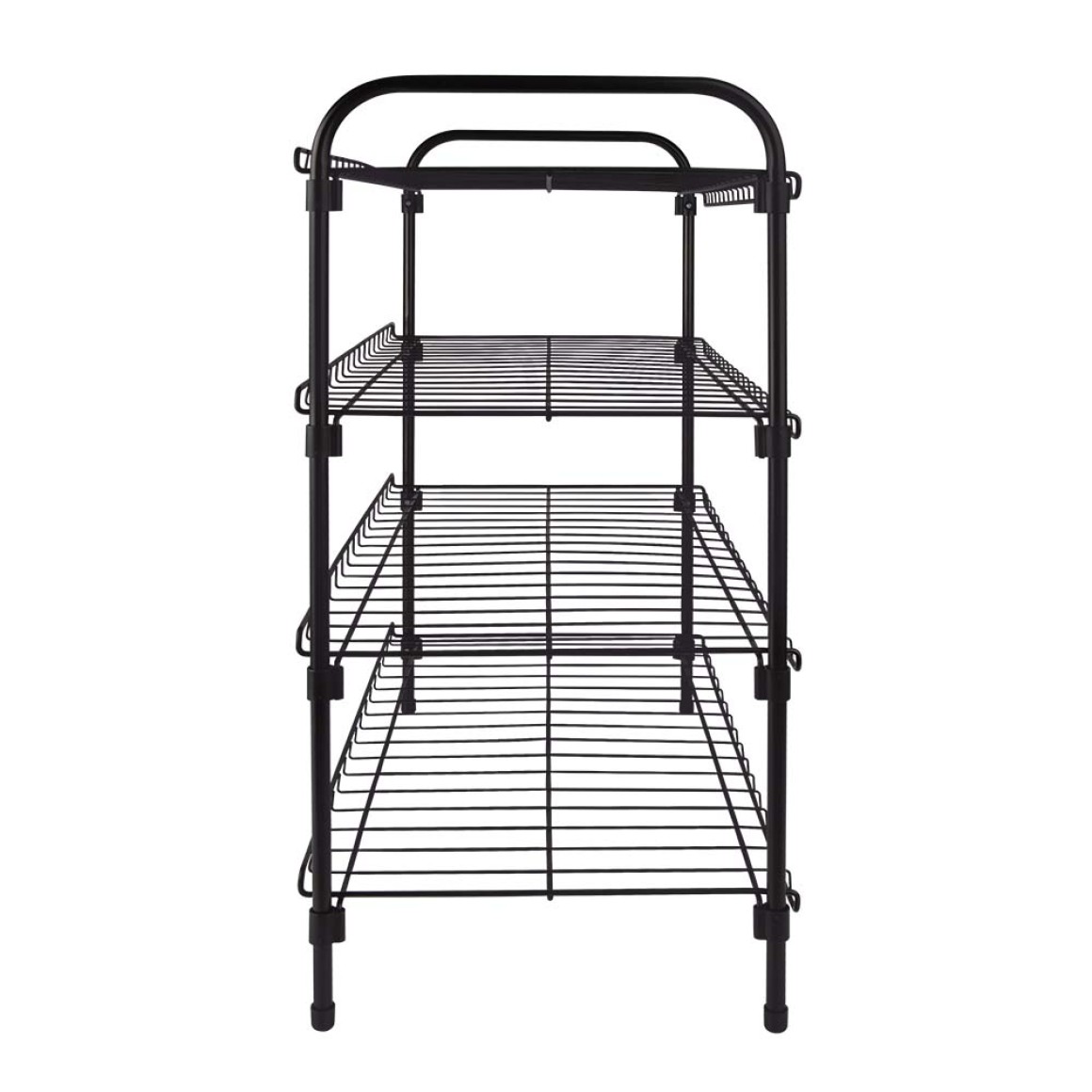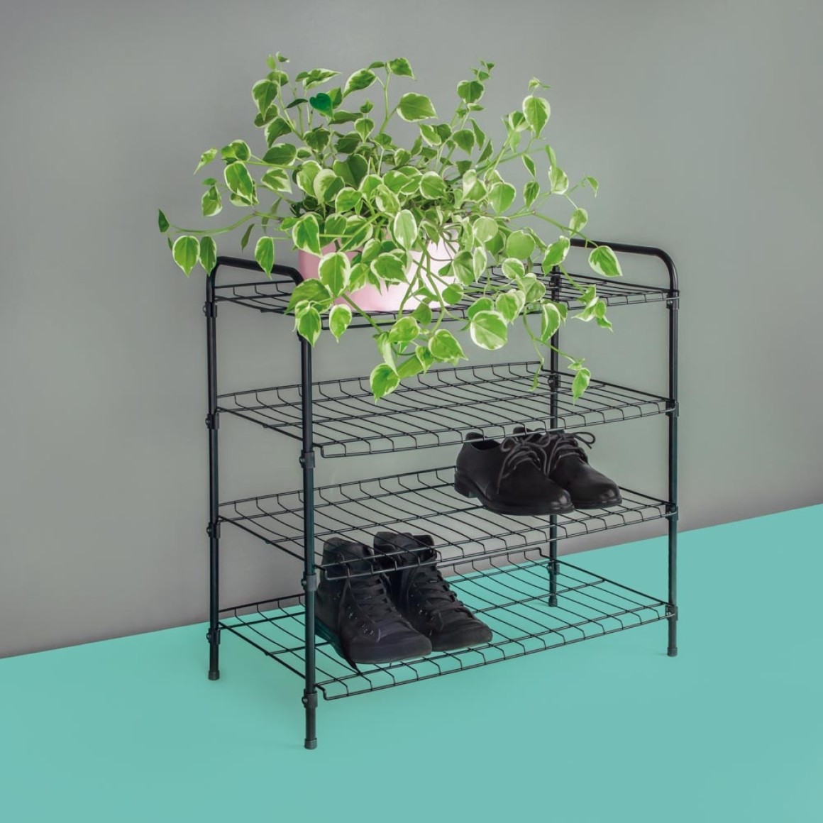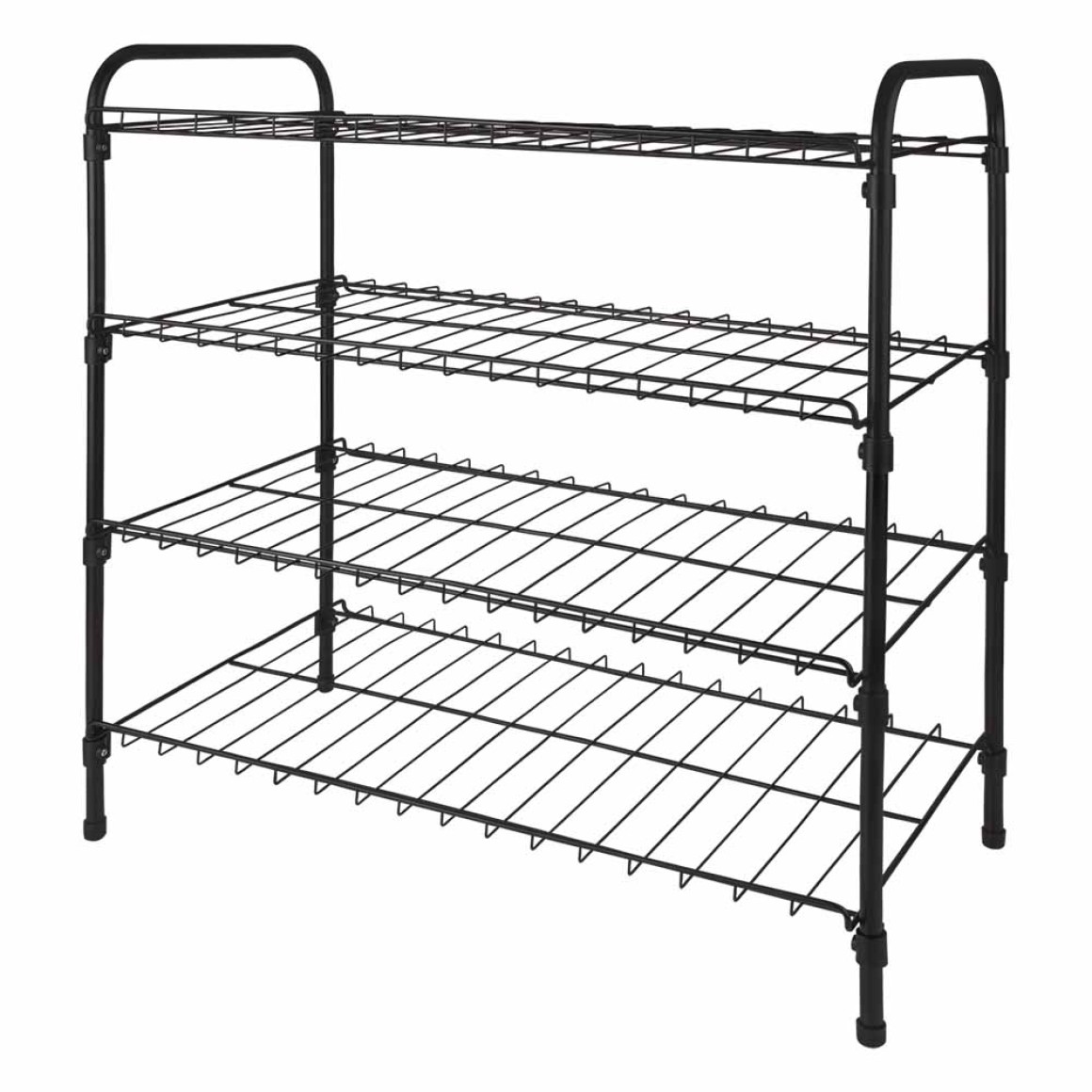 Deixe seus sapatos organizados com a Sapateira 4 Andares. Contando com capacidade para doze pares de sapatos, ela é ideal para guardar calçados e deixá-los arejados, evitando o mofo e mau cheiro que pode ocorrer ao colocá-los em locais fechados. Com estrutura de aço pintado em epóxi a pó na cor preta, é fácil de montar, não necessitando de ferramentas. É resistente, suporta até 12 Kg distribuídos, espaçosa e possui sapatas de proteção, impedindo que a sapateira arranhe o chão. Garanta sua casa arrumada com a Sapateira 4 Andares.