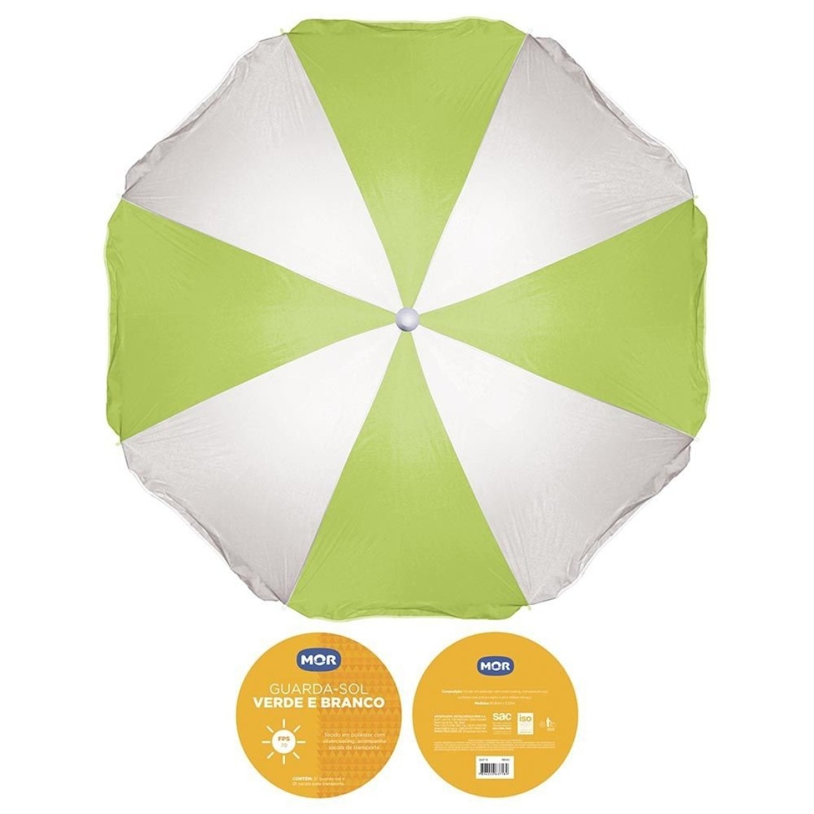 Indispensável para quem gosta de praia sem descuidar da saúde, o guarda-sol mor será seu maior aliado no verão. fácil de montar, ele tem estrutura em aço carbono com pintura epóxi à pó, rebites em aço e tecido em poliéster com silver coating que conferem a ele fps 70. com 1,80 metros de envergadura e altura de 2 metros, ele é leve para transportar e acompanha sacola para facilitar seu deslocamento.importante: o uso do guarda-sol não dispensa o uso de protetor solar.