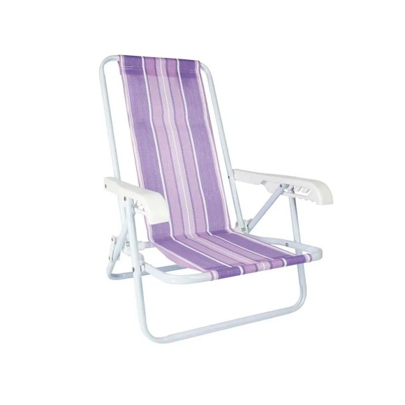 Reclinável em até quatro posições diferentes, é ideal para usar na praia, no camping,