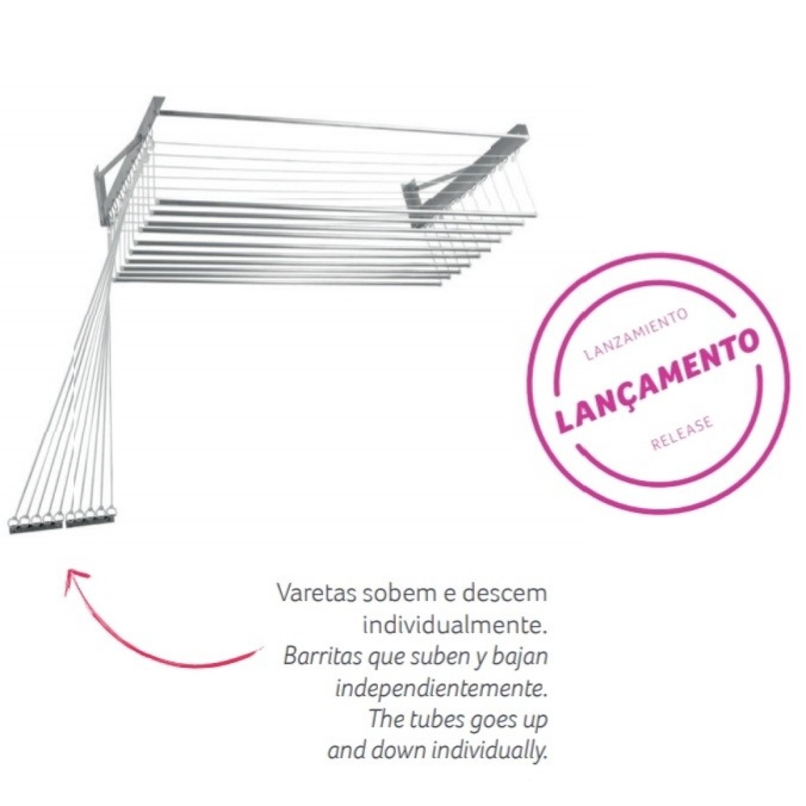 A solução ideal para fazer menor esforço. Cada uma de suas 10 varetas de alumínio desce individualmente,