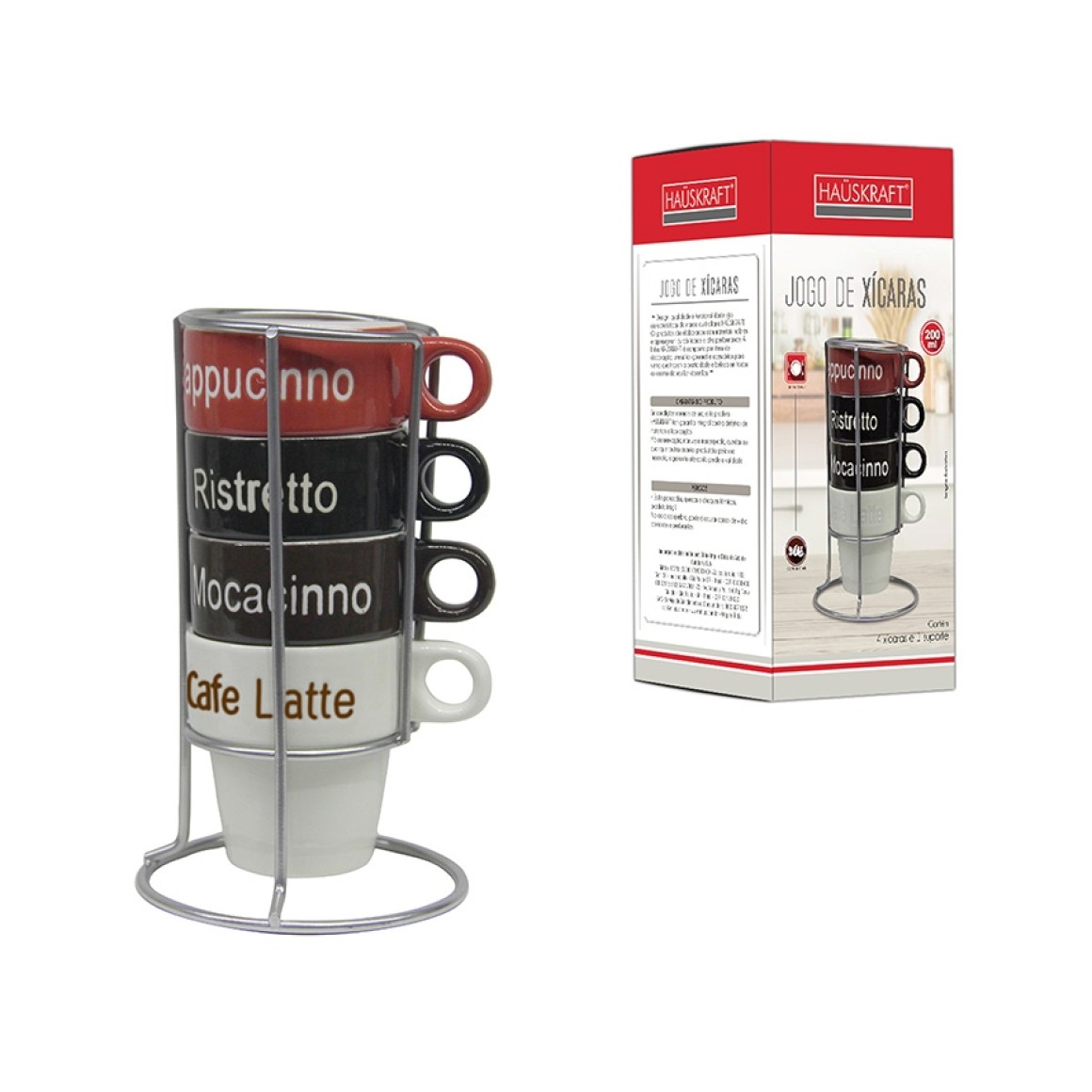 Conjunto de xicaras coloridas com suporte 200ml 5 peças