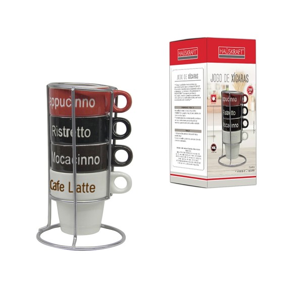 Conjunto de xicaras coloridas com suporte c/5pçs