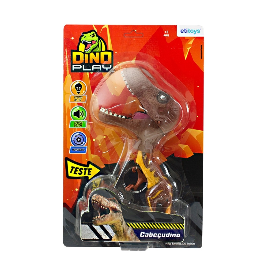 O Dinossauro que faz a alegria da criançada. Ele anda, emite som e luz para a brincadeira fica ainda mais legal e divertida.
