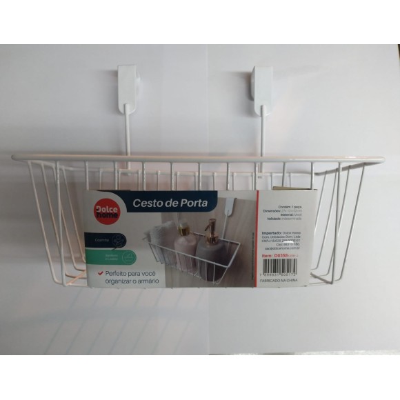 Cesto organizador com ganchos para ser acoplado em portas.