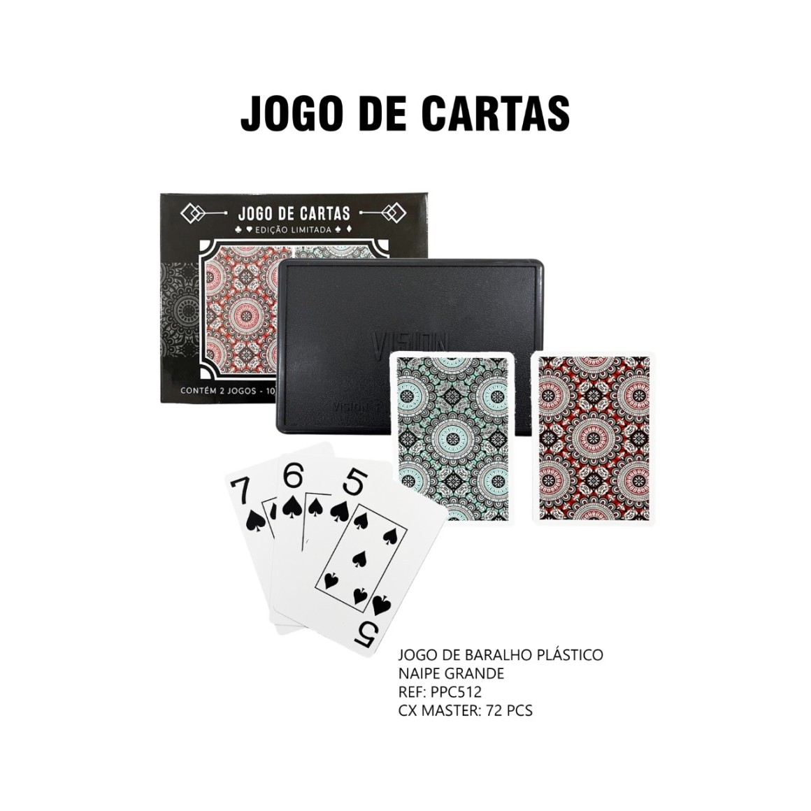 Baralho plástico naipe grande c/2 jogos ppc-512