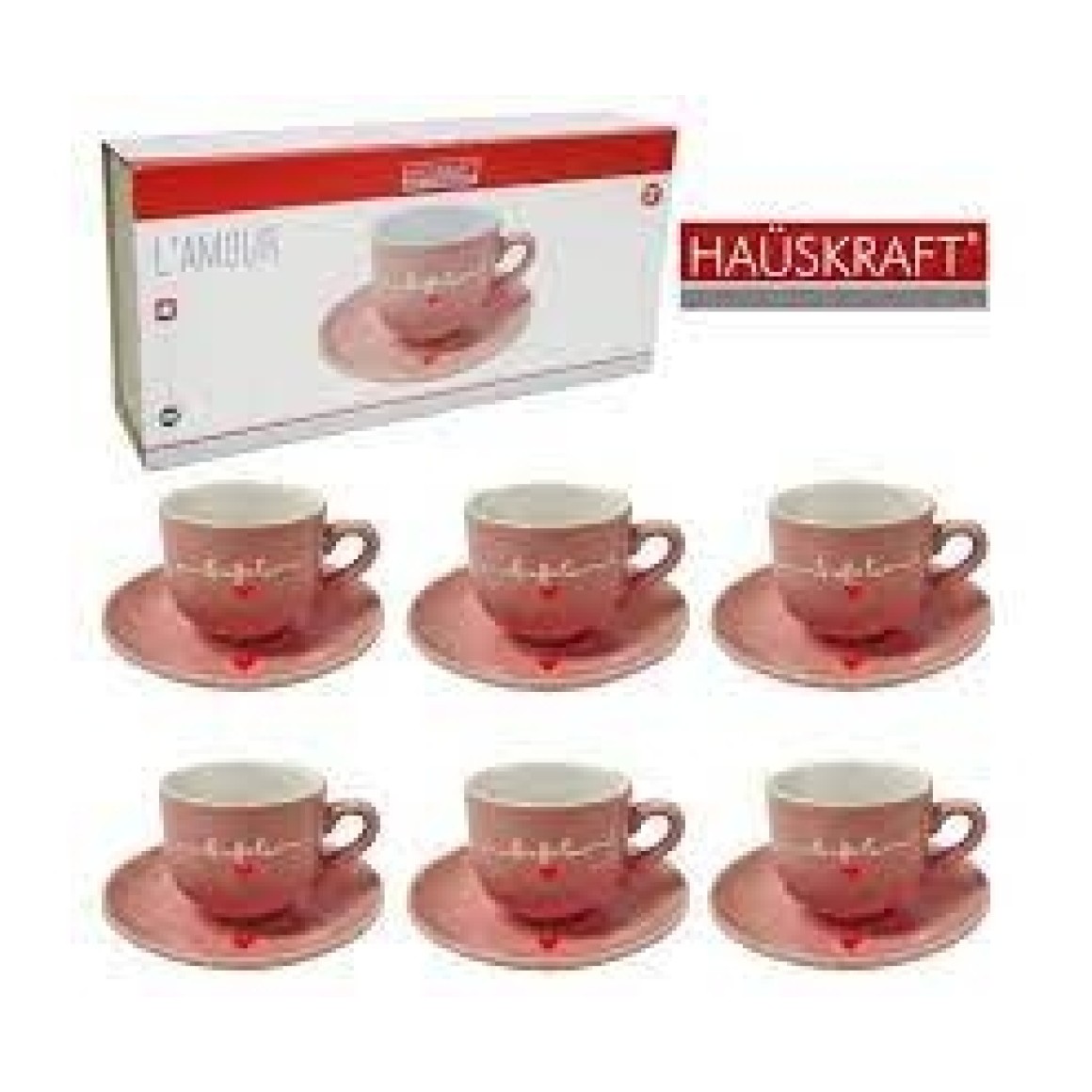 Conjunto de 6 Xícaras de Café e 6 Pires L'amour 90 ml Rosa - JGXC-047RS - Hauskraft .