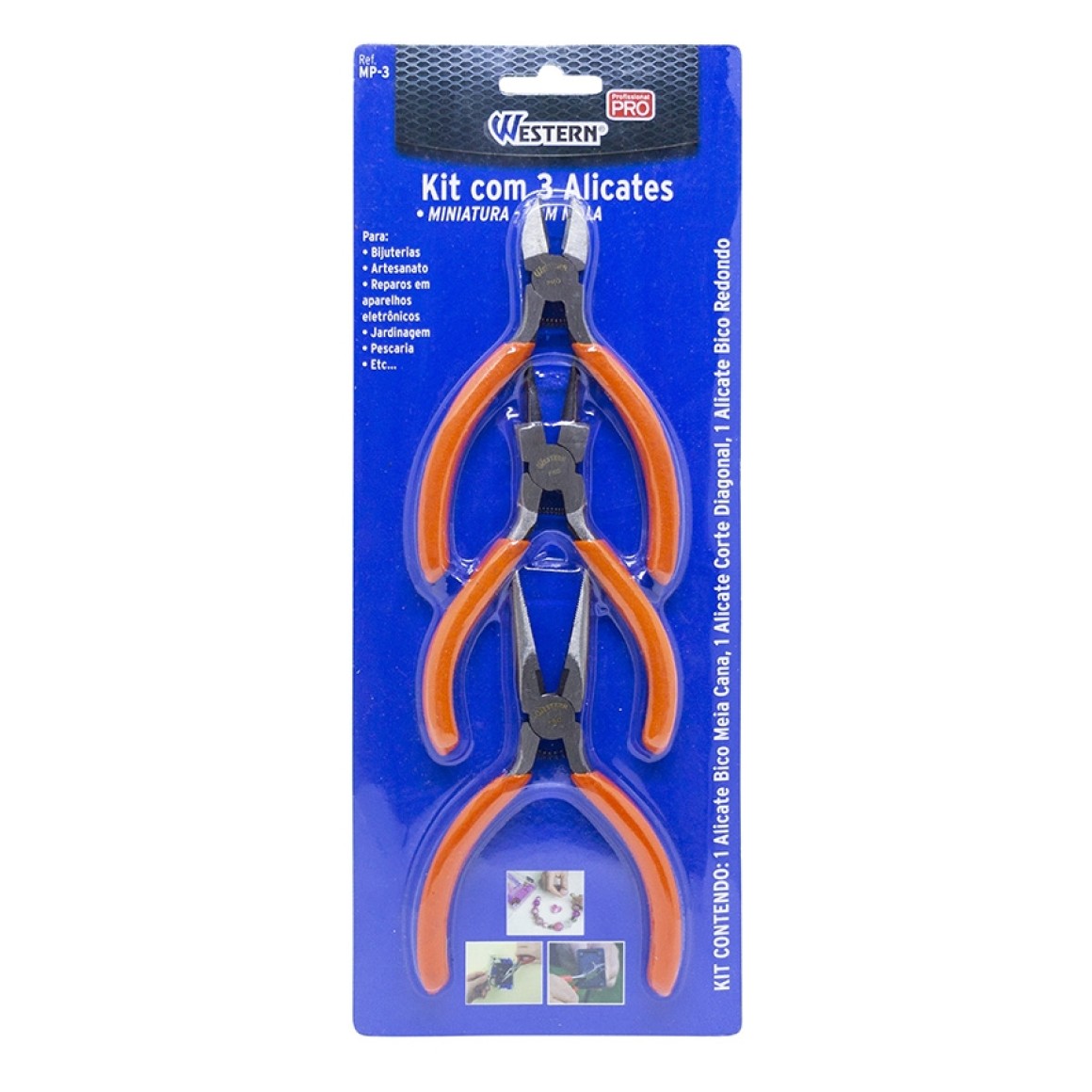 KIT COM 3 ALICATES MINIATURA COM MOLA