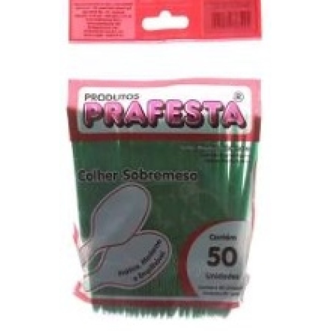 Colher sobremesa c/50pçs descartavel verde prafesta