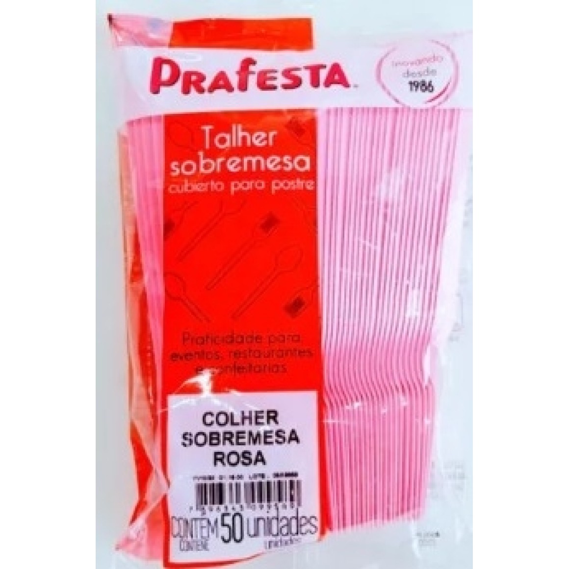 Colher sobremesa c/50 descartavel rosa prafesta