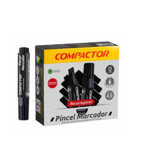 PINCEL MARCADOR PRETO C/12PÇS 15841-11 RECARREGAVEL COMPACTOR