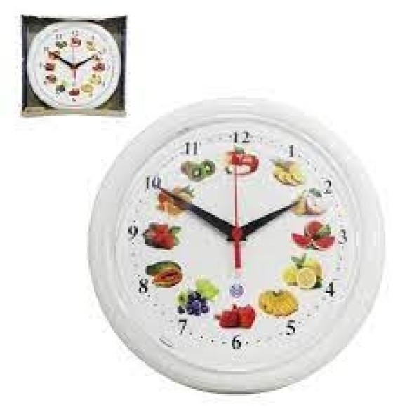 Relógio parede peq. pla-104 frutinhas numeral peq. preto todo branco plasfort