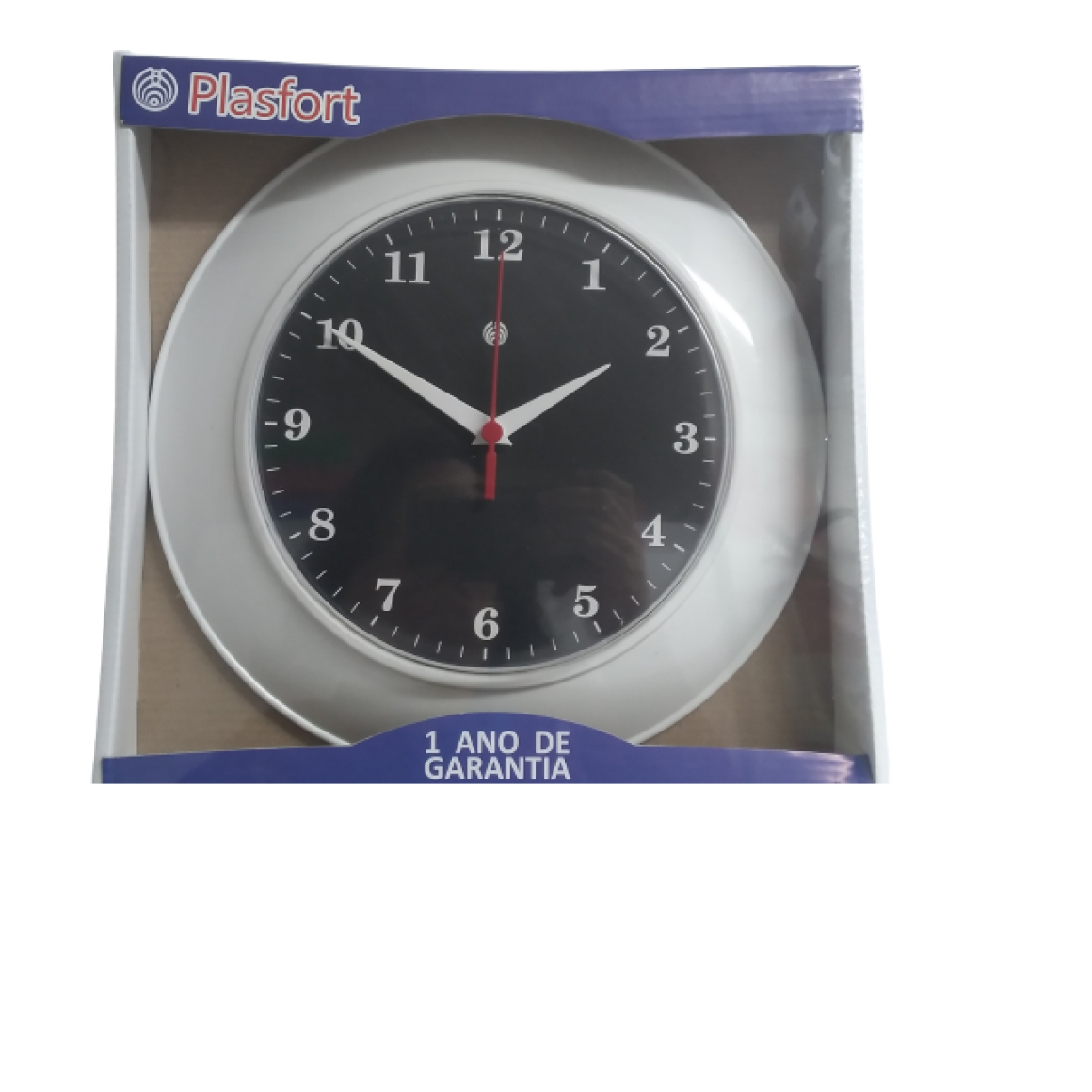 Relógio parede grande pla-520 numeral peq. branco fundo preto c/1pç plasfort