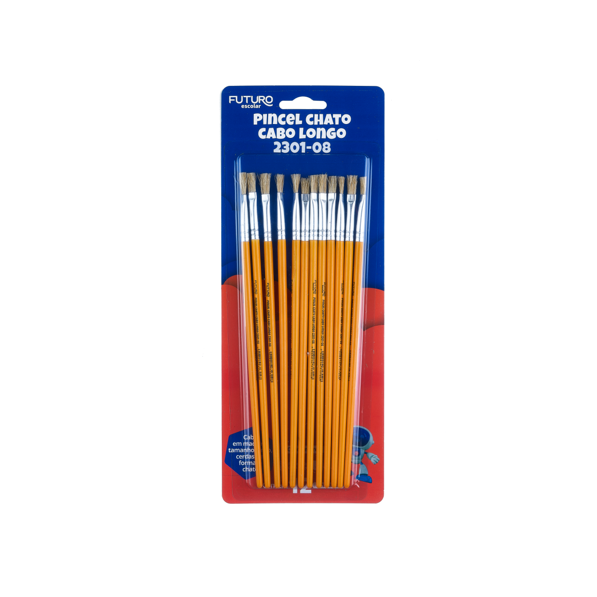 Pincel chato cabo longo 2301-08 cartela c/12pçs futuro fe122204