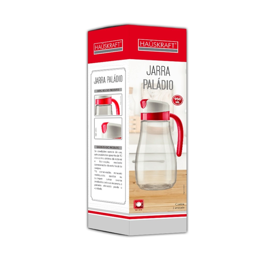 Linda Jarra de Vidro Paladio 900ml da Hauskraft, perfeita para acompanhar diversas refeições com muita praticidade,