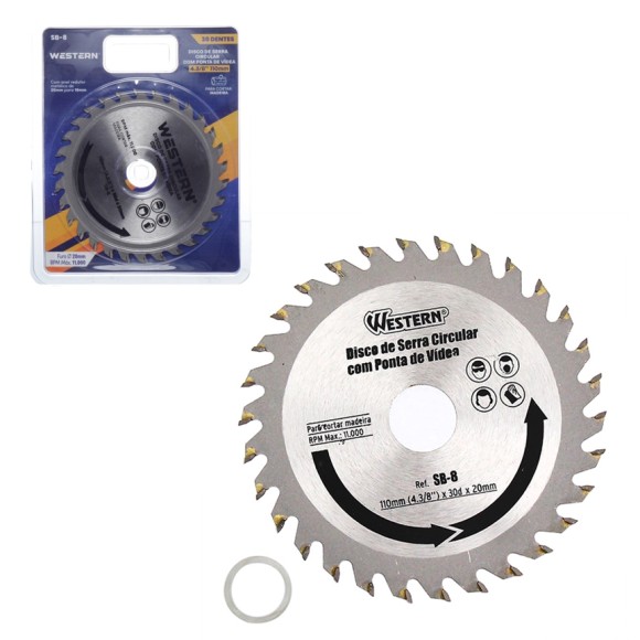 Disco de serra circular com ponta de vídea 4.3/8x30Dx20 Mm SB-8 C/1PÇ