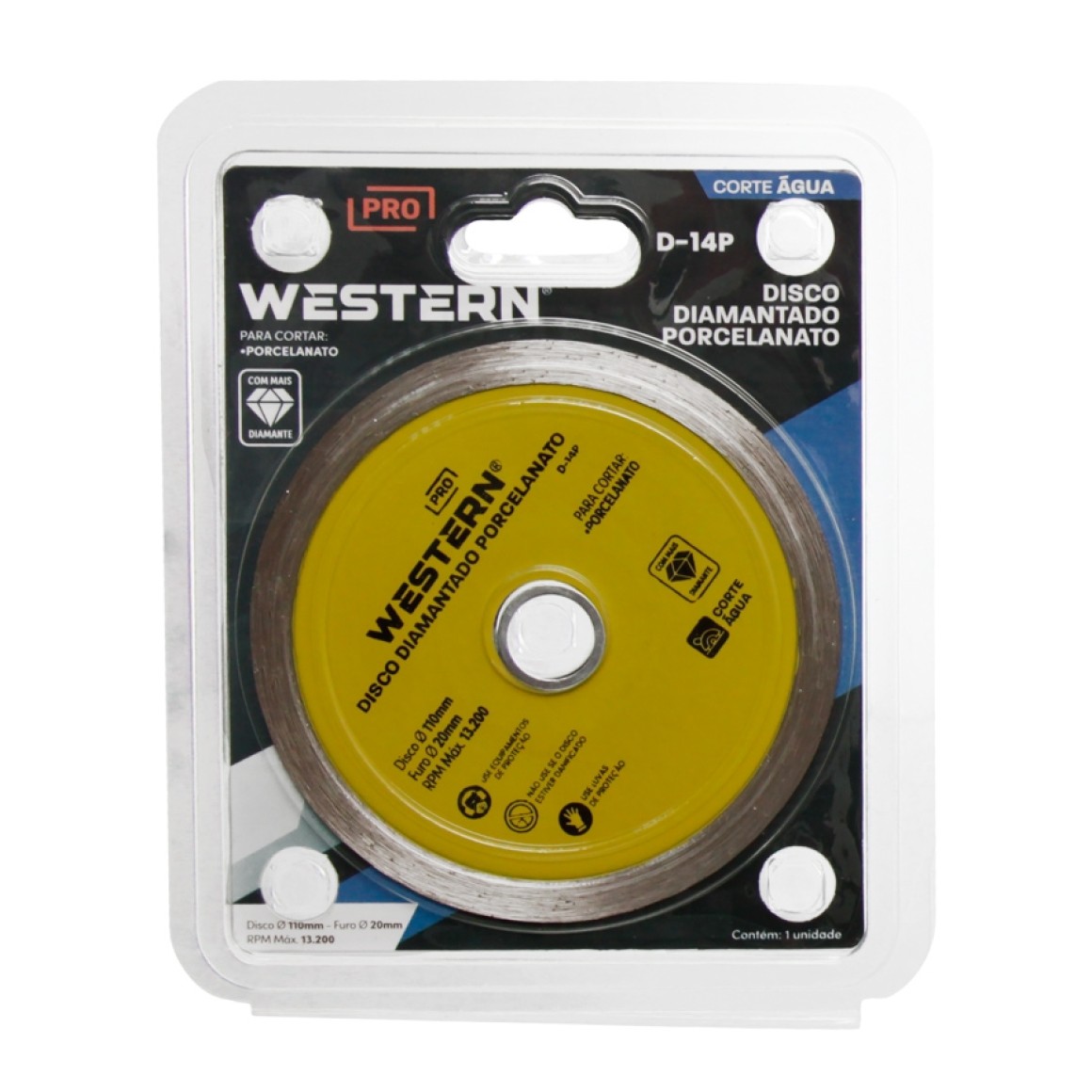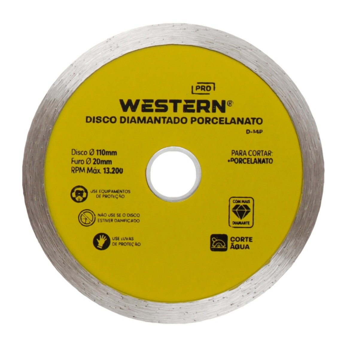Disco de corte c/1pç diamantado porcelanato 110mm furo 20mm - western