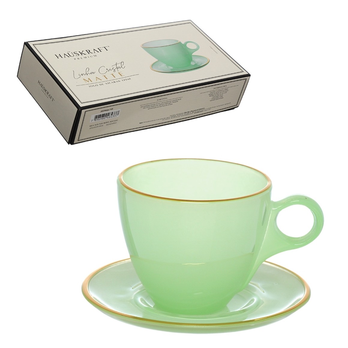 Jogo xícaras para chá verde com borda dourada 170ml 4 peças