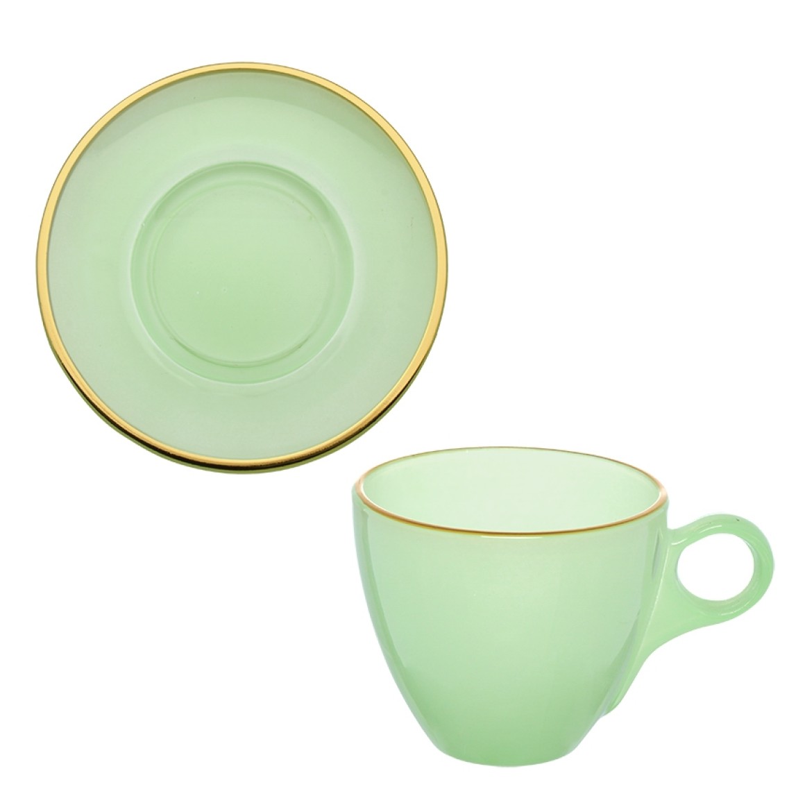 Jogo xícaras para chá c/4pçs verde com borda dourada jgch051/vd