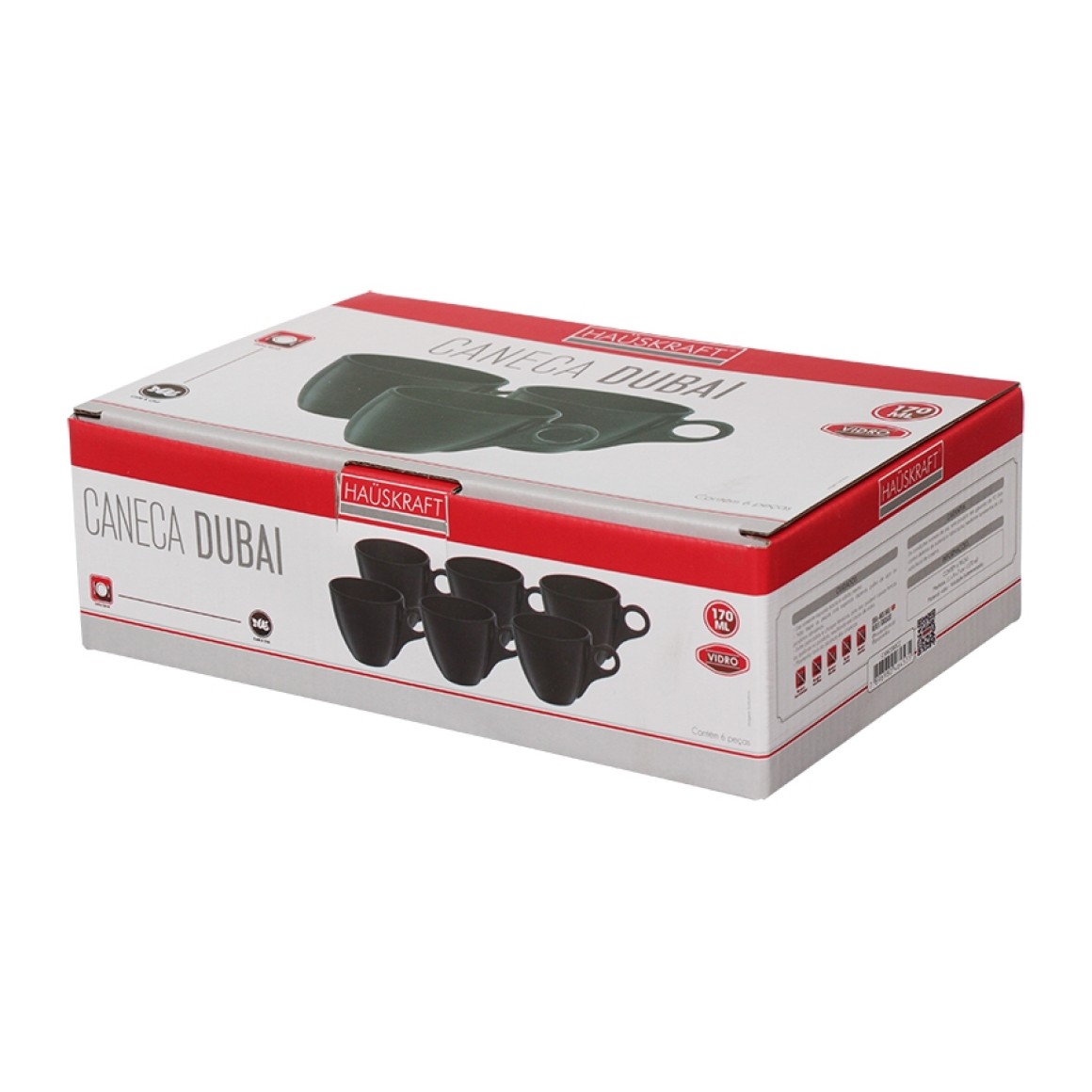 O Jogo de canecas de vidro Dubai, na cor cinza, é composto por 6 unidades com 170ml cada. Com sua cor intensa e vibrante é uma ótima opção na composição da decoração para sua mesa no café da manhã.