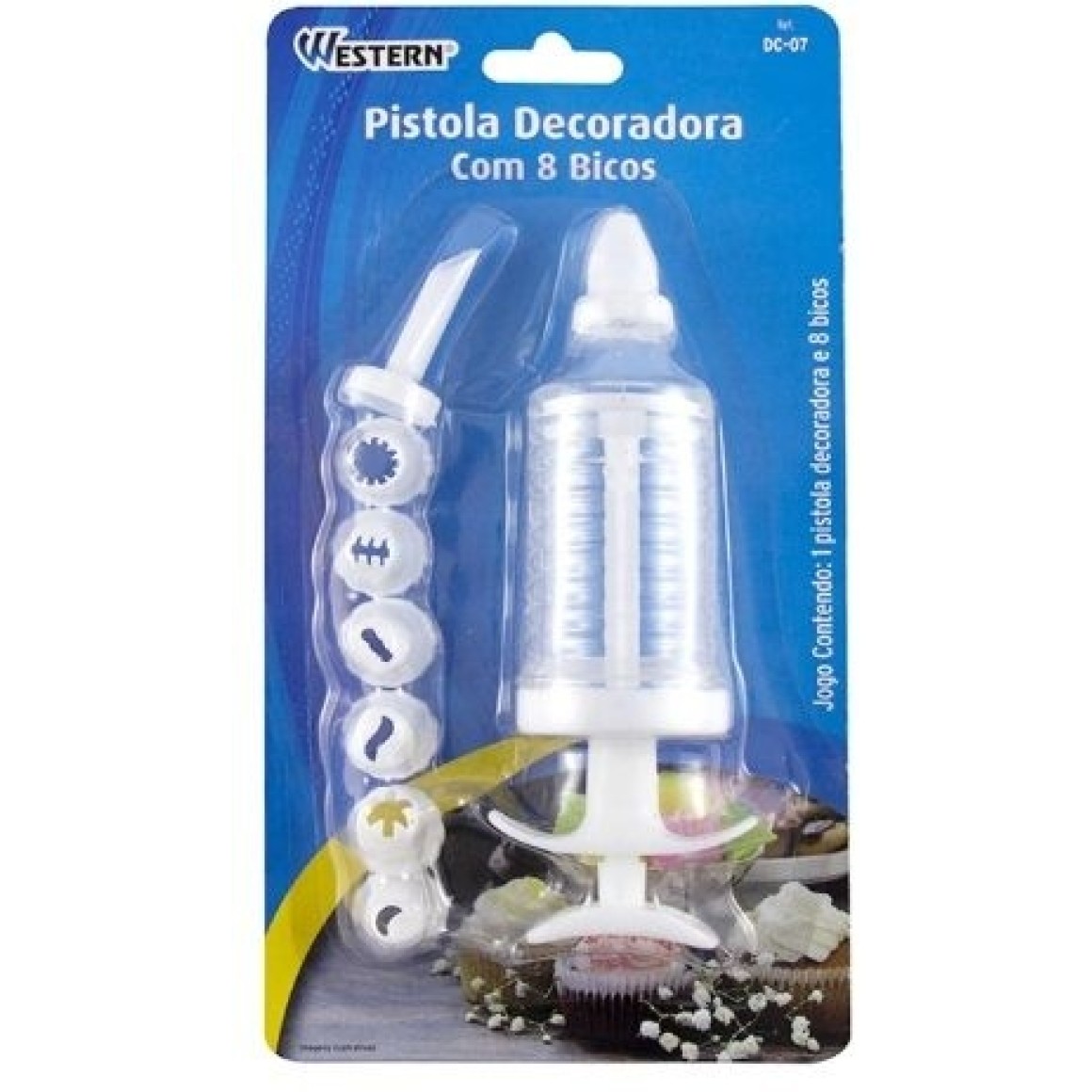 Jogo c/1 kit pistola decoradora e 8 bicos de confeitar dc-07 western home