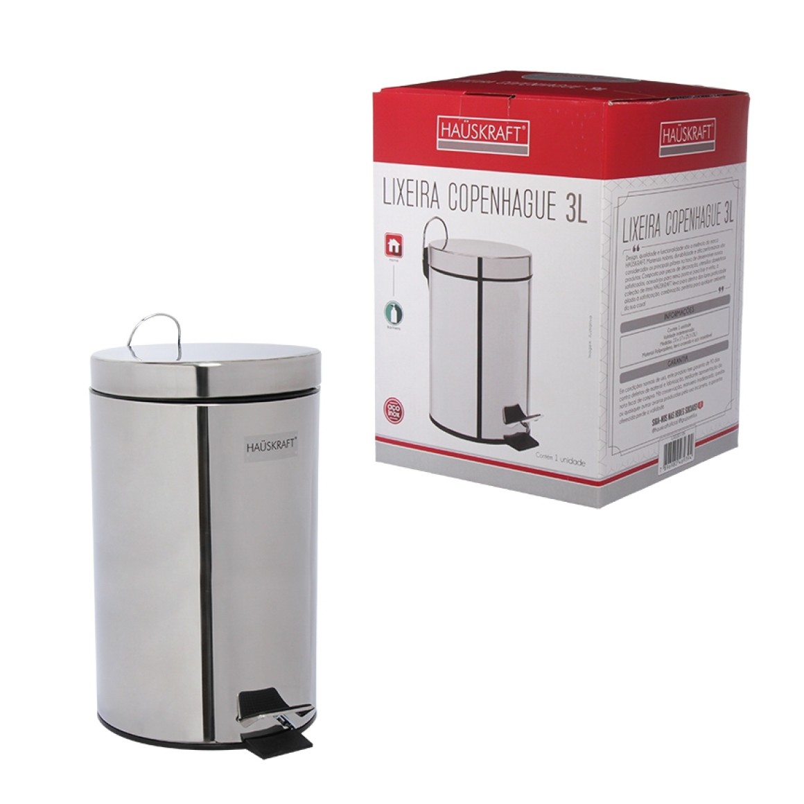 Lixeira com pedal copenhague 3 litros inox c/1pç lixe001/in hauskraft